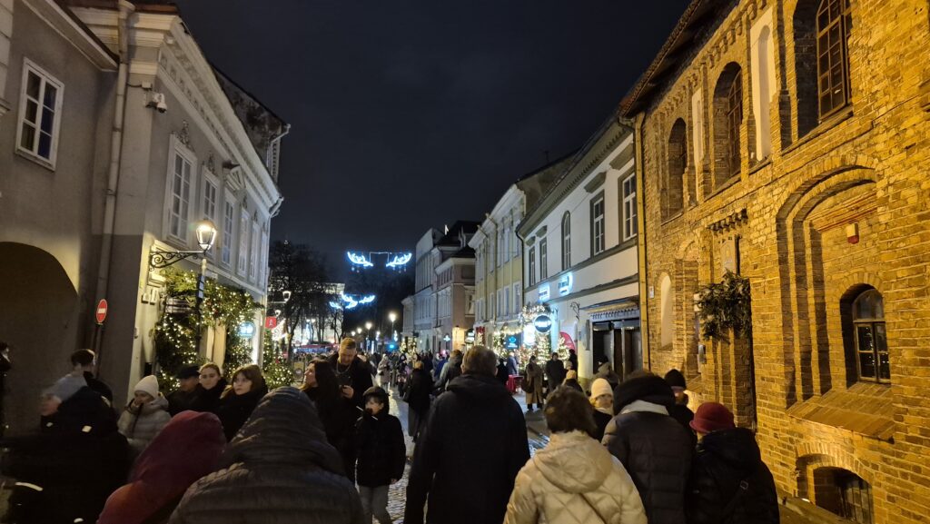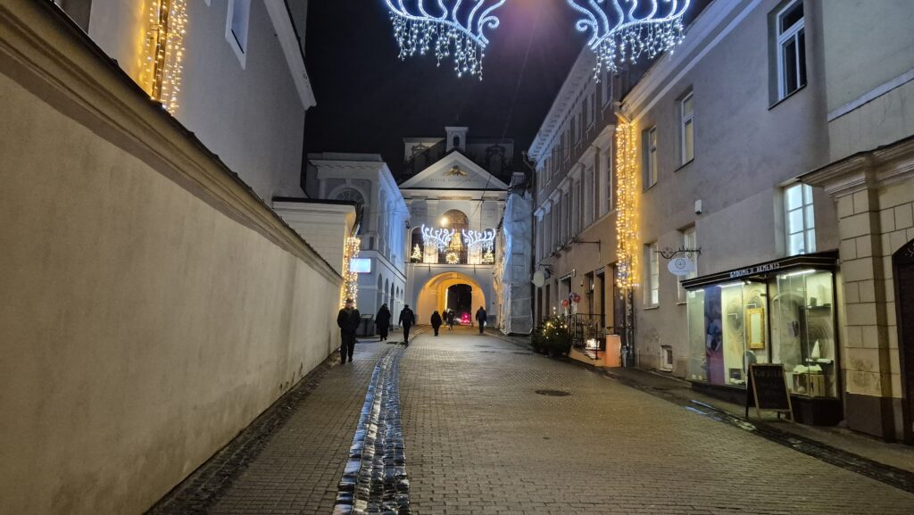 Wilno okazuje się bardzo kompaktowe – to co na mapie wydawało się odległe jest tuż na wyciągnięcie ręki. Wędrujemy po zatłoczonej ulicy Pilies czyli Zamkowej. Chyba wszyscy turyści i tubylcy postanowili też się nią przespacerować…