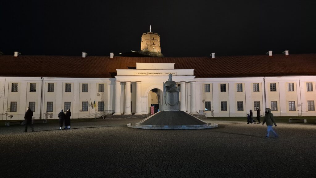 W trakcie wieczornego spaceru z Ajrą namierzam jeszcze pomnik króla Mendoga, który był poganinem, potem chrześcijaninem, później mu się to znudziło ale zrobił wiele, by Litwa powstała. Pomnik stoi sobie przed wejściem do muzeum narodowego.