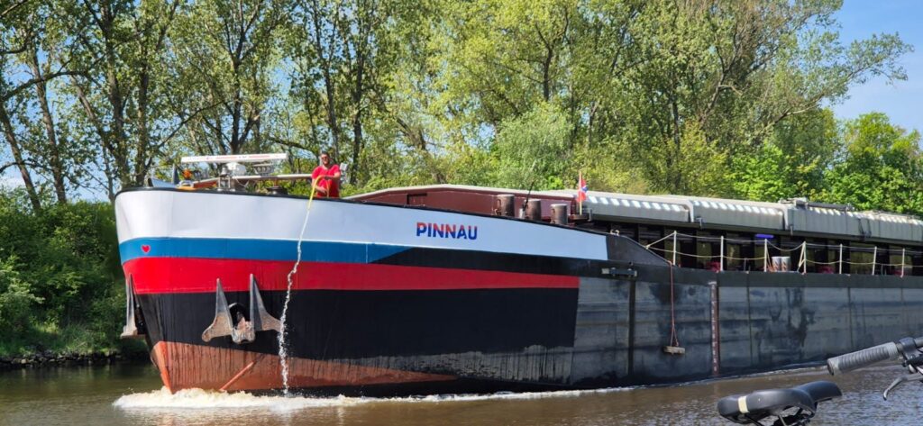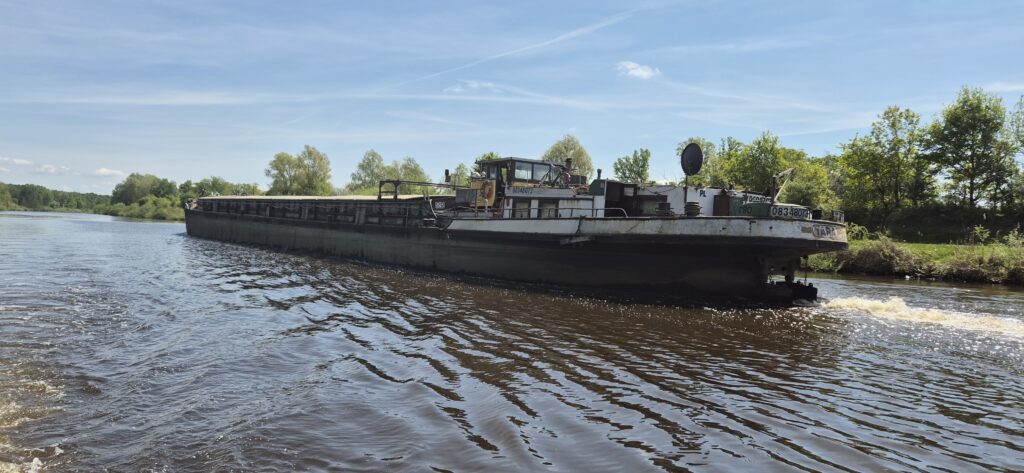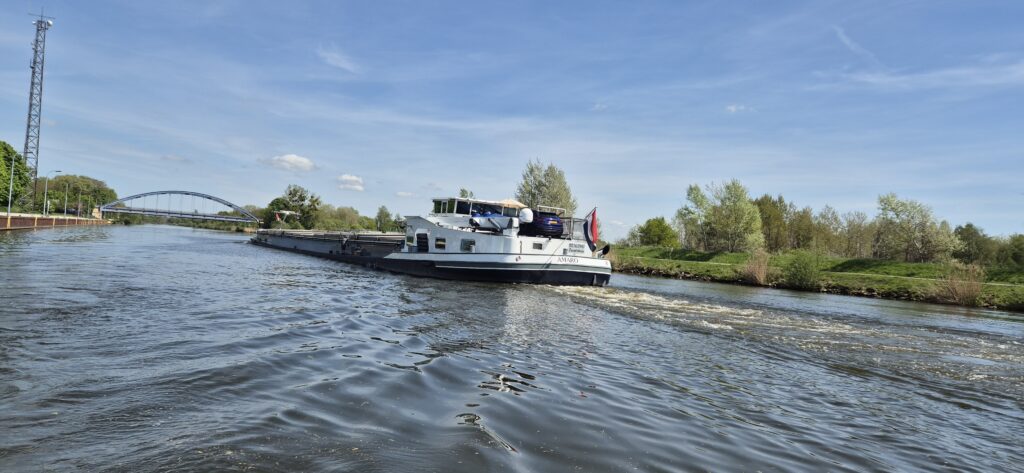 Rankiem w środę 30.04 robimy pierwsze pranie, tankujemy wodę po korek i o godzinie dziesiątej wypływamy. Na Mittellandkanal ruch barek jest już bardziej zauważalny. Co rusz mijają nas ogromne stalowe potwory. Na brzegach kanału znajdują się miejsca postojowe dla nich bowiem ruch nocą jest zabroniony. Najładniejsze płyną pod holenderską banderą, są pięknie odmalowane i czyściutkie. Dzisiaj mamy do przepłynięcia odcinek o długości 40 km, ilość śluz: zero.