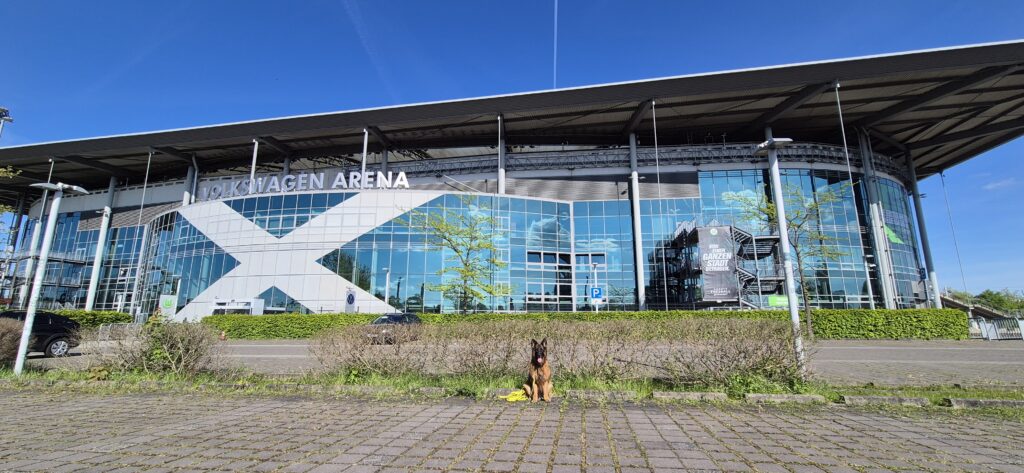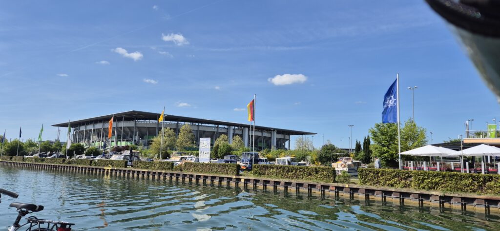 Do Wolfsburga przypływamy o 15, wcześniej udaje nam się potwierdzić nocleg w marinie. Motorbootclub Wolfsburg to mały port zlokalizowany po prawej stronie praktycznie pod Volkswagen Arena. Opłata za postój wynosi 19 e i nie obejmuje prądu (wrzutka wg zużycia) ani pryszniców (wrzutka 1 e). Na terenie portu znajduje się restauracja Santorini, serwująca w zgodzie z nazwą dania kuchni greckiej. Do największej atrakcji czyli Autostadt mamy 20 minut na piechotę wzdłuż kanału. Jest to ogromne centrum wystawiennicze fabryki VW położone tuz obok głównej fabryki. Stąd też szczęśliwi nabywcy odbierają swoje nowe samochody. Każda z marek należąca do koncernu ma tutaj swój pawilon: Volkswagen, Audi, Porsche, Skoda, Seat i Lamborgini. Niestety na teren wystawienniczy nie można wchodzić z psami więc to tyle.
