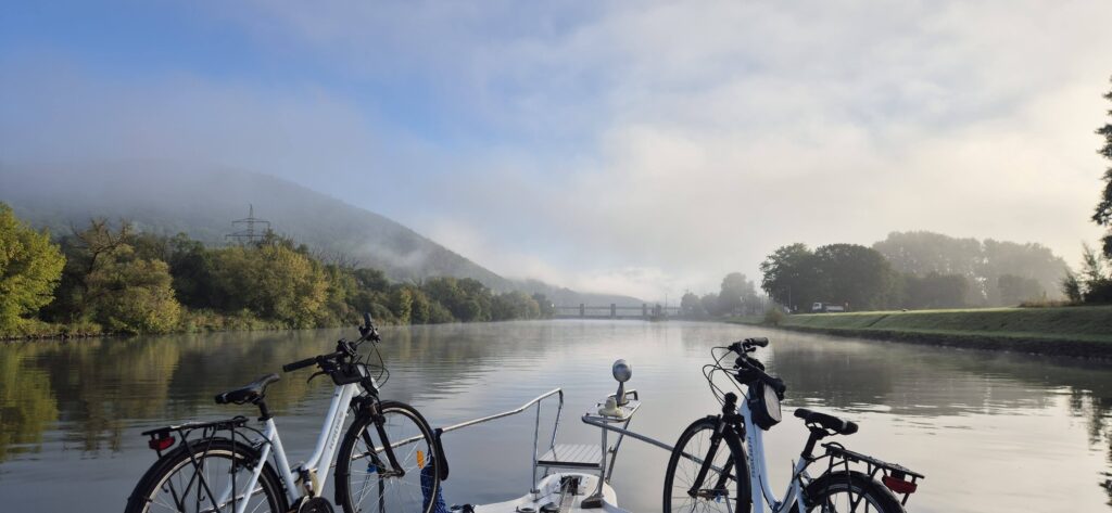 Przed nami kolejny dzień na Menie, trasa nieco krótsza ale widokowo jest podobnie – znaczy się bardzo ładnie. Men cały czas się wije, mijamy małe, urokliwe miasteczka, co jakiś czas przy nabrzeżach widoczne są duże kampingi. Niemcy są chyba największymi fanami tej formy relaksu – wystarczy trochę wody, przyczepa i gotowe. Po drodze mijamy Karlstadt, otoczony starymi obronnymi murami.