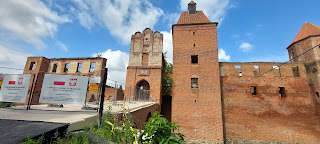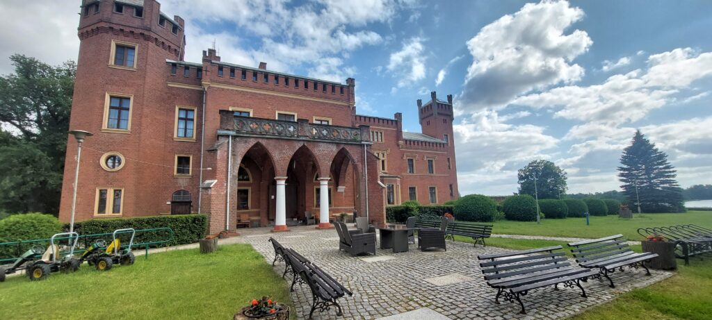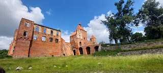 Na koniec zamek w Karnitach oddalony o kolejne 26 km. Zamek oparł się zniszczeniom i wygląda na to, że jest w doskonałej kondycji. Znajduje się tu miły hotel i restauracja. Wnętrza nie są udostępnione zwiedzającym, można za to do woli spacerować po parku. Zamek pojawił się w powieści „Pan Samochodzik i złota rękawica”. My zjedliśmy tu obiad i odpoczęli po ciężkim ale pasjonującym dniu. Do Iławy mamy 26km. Wraz z obiadem zajęło nam to 7 godzin.Wszędzie mogliśmy zwiedzać z psem, w zamku w Karnitach w restauracji zaproponowano nam miejsce na trasie co i tak było zgodne z naszymi oczekiwaniami.